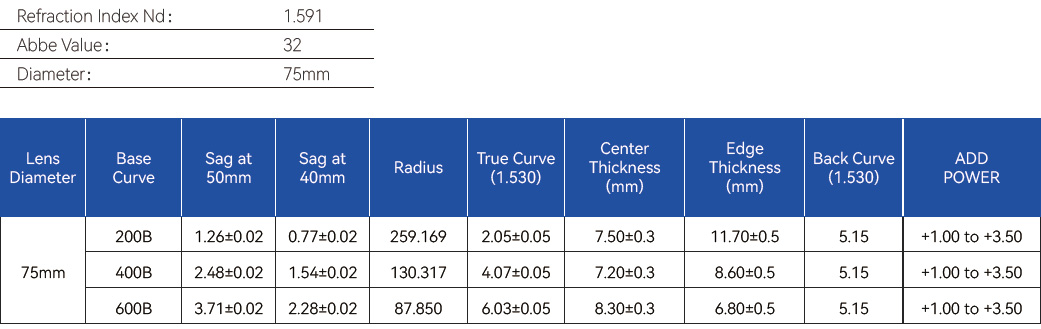1.591 POLYCARBONATE SEMI-FINISHED FLAT ¥£×≥TOP BIFOCAL LENS